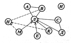 Социограммная техника является существенным дополнением к табличному подходу в анализе социометрического материала, ибо она дает возможность более глубокого качественного описания и наглядного представления групповых явлений. Анализ социограммы начинается с отыскания центральных, наиболее влиятельных членов, затем взаимных пар и группировок. Группировки составляются из взаимосвязанных лиц, стремящихся выбирать друг друга. Наиболее часто в социометрических измерениях встречаются положительные группировки из 2-3 членов, реже из 4 и более членов (См. рис.3)