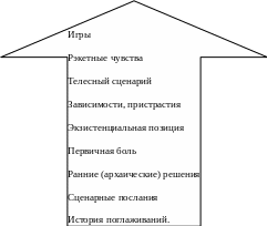 С точки зрения современного транзактного анализа, развитие жизненного сценария представляет собой иерархию, где психологические игры Берна являются только и уже завершением процесса создания сценария, как бы вершиной айсберга, основание которого уходит в историю развития ребенка, в историю его жизненного опыта.