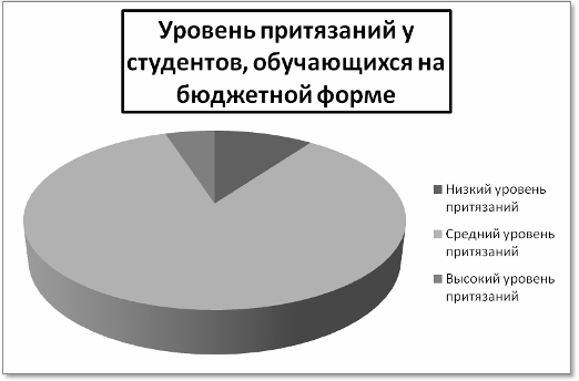 В нашем исследовании уровень притязаний выявляется у студентов, учащихся на бюджетной и платной формах. Как уже было отмечено ранее и та и другая формы обучения имеет как свои достоинства, так и свои недостатки.