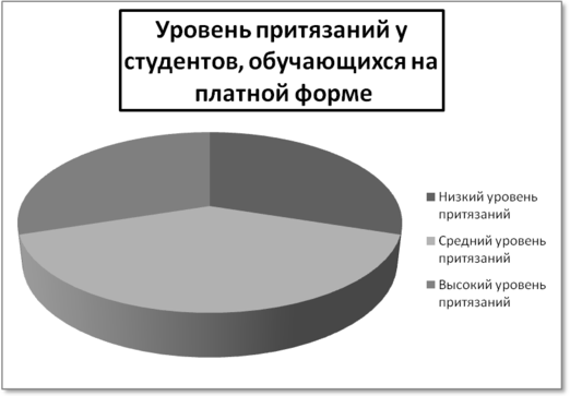 И на наш взгляд это связано с тем, что идя на платную форму обучения студент, может учиться исключительно ради получения диплома, а не ради получения профессиональных знаний и навыков, что объясняет низкую мотивацию и соответственно низкий уровень притязаний.