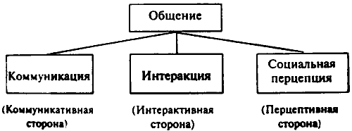Учитывая сложность общения, необходимо каким-то образом обозначить его структуру, чтобы затем возможен был анализ каждого элемента. К структуре общения можно подойти по-разному, как и к определению его функций. Мы предлагаем характеризовать структуру общения путем выделения в нем трех взаимосвязанных сторон: коммуникативной, интерактивной и перцептивной. Структура общения может быть схематично изображена следующим образом: