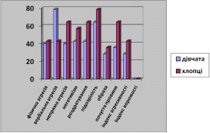 найбільш схильними до вербальної агресії є дівчата (78,57%), хоча і серед хлопців цей показник досить високий (42,85);
