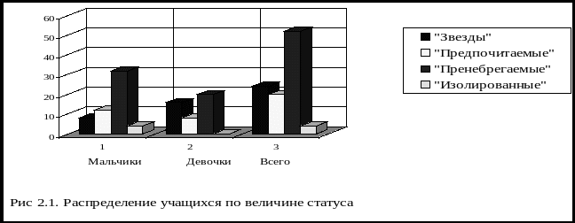 Таблиця 2.1 Кількісний розподіл учнів по статусних шарах за результатами тестування з застосуванням соціометричній методики