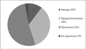 Так, в центральной окружности будут находиться дети со статусом «звезды», следующий круг со статусом «предпочитаемые», далее «принятые», самый последний круг со статусом «не принятые».