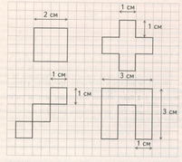 Ребенку предлагают нарисовать 4 фигуры на листочке из тетради в клеточку