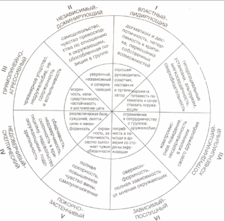 Л.Н. Собчик модифицировала методику интерперсональной диагностики Т. Лири [30] и выделила восемь "октантов", каждый из которых отражает определённый стиль межличностного взаимодействия индивида со средой [30,76-77] (рисунок 1).