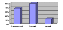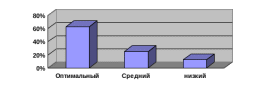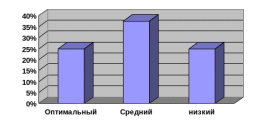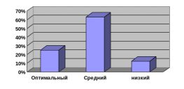 Как видно из рис. 7, 37,5% детей показали оптимальный уровень – правильно поняли инструкцию с первого предъявления, быстро выполняли предложенные задания, без ошибок или с незначительными неточностями; были заинтересованы в работе, активны, сопровождали свои действия словесными комментариями. Наблюдалась высокая работоспособность. Давали развернутые ответы на вопросы экспериментатора. Рисунки таких детей были оригинальными как по тематике и сюжету, так и по цветовому решению.
