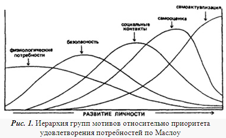 В мотивационной теории Маслоу представлена своеобразная иерархия мотивов: во-первых, разграничиваются не отдельные мотивы, а целые их группы. Во-вторых, эти группы упорядочены в ценностной иерархии соответственно их роли в развитии личности. Но и потребности высоких и высших уровней при этом трактовались как не менее инстинктоподобные, т.е. врожденные (конституциональные) диспозиции, чем низшие потребности. Пока потребность не удовлетворена, она активирует деятельность и влияет на нее. При этом деятельность не столько толкается изнутри, сколько привлекается извне возможностью удовлетворения. Основной идеей классификации Маслоу является принцип относительного приоритета актуализации мотивов, гласящего, что, прежде чем активируются и начнут определять поведение потребности более высоких уровней, должны быть удовлетворены потребности низшего уровня.