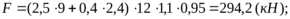 F=sn·c·a·(l/2)·γf·γn = 1·1·12·24/2·1,4·0.95=191,5 (кН).