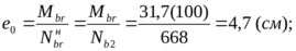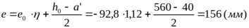 Эксцентриситет продольной силы относительно центра тяжести приведенного сечения: