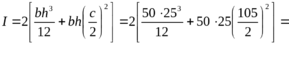 Is =2·μ·b·h0(с/2)² = 2·0,0075·50·25(105/2)² = 51679,7 (см4);