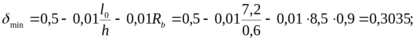 Т.к. δ=0,1577 < δmin=0,3035 принимаем δ=0,3035.