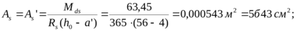 As=0,002·b·h0=0,002·50·56=5,6 (см²)