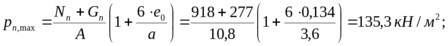 pn,max=135,3 < 1,2·R=1<2·261=313,2 кН/м²;