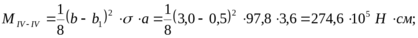 Арматура, укладываемая параллельно меньшей стороне фундамента, определяется по изгибающему моменту в сечении IV-IV: