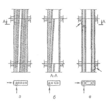 Витяжні шахти систем вентиляції з природним спонуканням житлових будівель проектуються з об'єднаними або окремими каналами. На рисунку 16, а зображено витяжну вентиляційну шахту з окремими каналами, які виконуються з бетонних блоків з утеплювачем фібролітом.