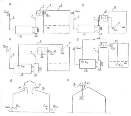 : Рис. 2. Схеми припливних та витяжних систем вентиляції: