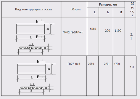 Конструкция перекрытий по заданию: сборные железобетонные, марка указана в таблице 2.2
