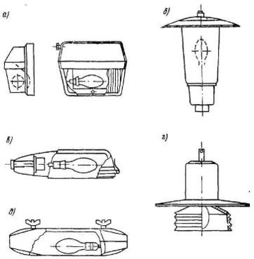 Рис. 1. Схемы некоторых уличных светильников