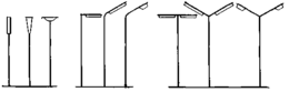 Необходимо также упомянуть о типе опоры с одним венчающим светильником, накрытым сверху крышей, – отражателем. Эти светильники с лампами накаливания или люминесцентными редко применяются для освещения больших улиц. Чаще их устанавливают на малых улицах, небольших площадях, вокруг памятников, у входов в парки и в некоторых других местах города, где желательно выделить более освещенную небольшую площадь.