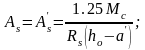 3.Если принятая площадь сечения сжатой арматуры A1s существенно превышает её значение, вычисленное по формулам (15) и (16), например, при отрицательном значении A1s, то площадь сечения растянутой арматуры согласно условиям (19)-(21):