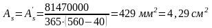 Принимают по 4Ø16 A-III с каждой стороны (As=A′s=8,04 см2).