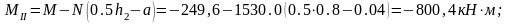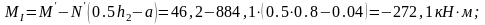 МІІ=М-N(0,5·h1-a)= - 139,9-416,9·(0,5·0,6-0,04) = -248,3кН·м;