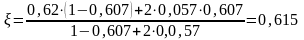 ℮=0,336·1,11+0,5·0,6-0,04=0,629 м=629мм.