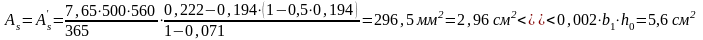 Аs´ =0.002 b1ho = 0.002·500·560=560 мм2 =5,6 см2.