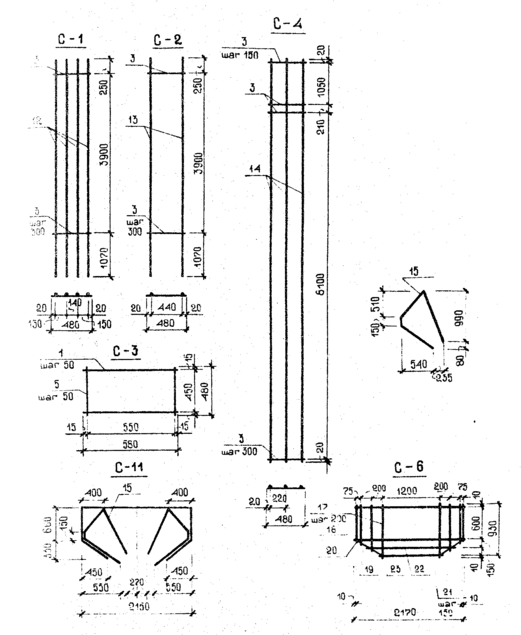 Рисунок 1 – Опалубочный чертеж и армирование колонны