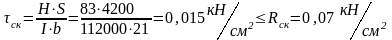 Rск = 0,07 кН/см2– расчетное сопротивление древесины скалыванию по табл. 3 [2]