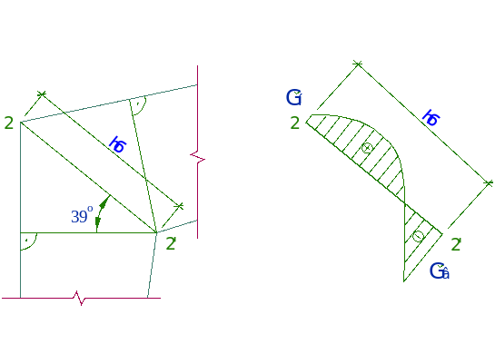 h = h/соs39о=160/0,777=205,9 см- высота биссектрисного сечения;