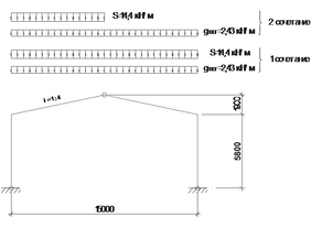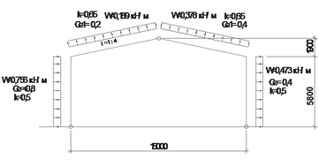 Второе сочетание нагрузок включает в себя постоянную и снеговую нагрузки по всему пролету совместно с ветровой нагрузкой: