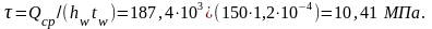 Критическое касательное напряжение определяется по формуле