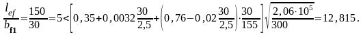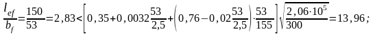 где lef = 1,5 м – расстояние между точками закрепления сжатого пояса от поперечных смещений, равное шагу балок настила a1.