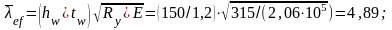 Определяем условную гибкость стенки