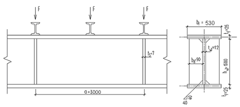 Рис. 10. Схема балки, укрепленная поперечными ребрами жесткости