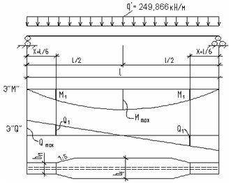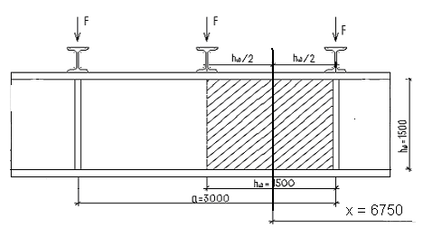 Так как а = 3 м > hw = 1,5 м, определяем Mср и Qср по середине условного отсека шириной, равной половине высоты стенки hw, для чего вычисляем величины моментов и поперечных сил в середине расчетного участка (хср = 6,75 м) :