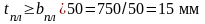 Длина планки bпл принимается равной расстоянию в свету между ветвями плюс напуск на ветви по 25 мм