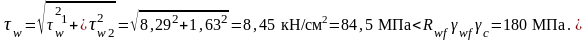 Учитывая, что несущая способность планки больше, чем несущая способность сварного шва с катетом kf ≤ tпл, достаточно проверить прочность сварного шва. Расчет производится на равнодействующую напряжений в шве от изгибающего момента M1 и поперечной силы F.