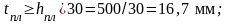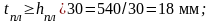 Длина планки bпл принимается равной расстоянию в свету между ветвями плюс напуск на ветви по 30 мм