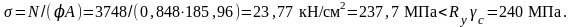 По [1,табл.72] в зависимости от ef находим коэффициент продольного изгиба = 0,848.