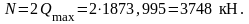 где Q = N/2 = 3748/2 = 1874 кН.
