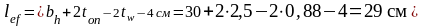 – условная длина распределения нагрузки, равная ширине опорного ребра главной балки bh плюс две толщины оголовка колонны (ton принята 25 мм), за минусом толщины диафрагмы (≈2tw) и 40 мм для пропуска швов.