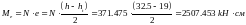 Продольная сила: N=371.475 kН; Максимальный изгибающий момент от поперечной нагрузки: