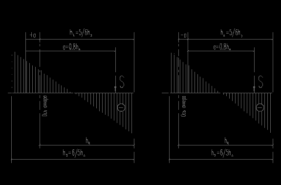 Параметры напряженного состояния, вызванные действием приложенных силовых факторов определяется по методу эквивалентных сечений, принимая, что равнодействующая растягивающих напряжений от изгибающего момента располагается по координатной линии анкерных болтов, размещенной в растянутой зоне сечения.