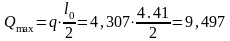 Расчетная схема плиты на действие эксплуатационной нагрузки – балка на двух опорах, загруженная равномерно распределенной нагрузкой от собственной массы плиты с кровлей и снега (Рис. 3). Расчетная длина l0 = 0.98l = 0.984.5 = 4.41 м.
