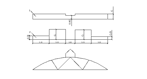 Прогоны неразрезные, расположенные через 1,25 м, составлены из двух досок на ребро со стыками вразбежку. Фермы попарно связаны между собою вертикальными связями из досок в плоскости крайних раскосов.