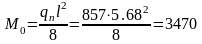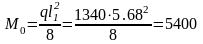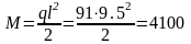 2. При подъеме фермы в вертикальном положении с помощью 5-метровой траверсы, принимая все фермы равномерно распределенным по длине, получим изгибающий момент под узлом траверсы