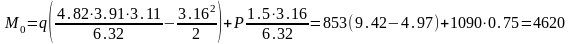 Рис7. К определению изгибающих моментов в верхнем поясе.